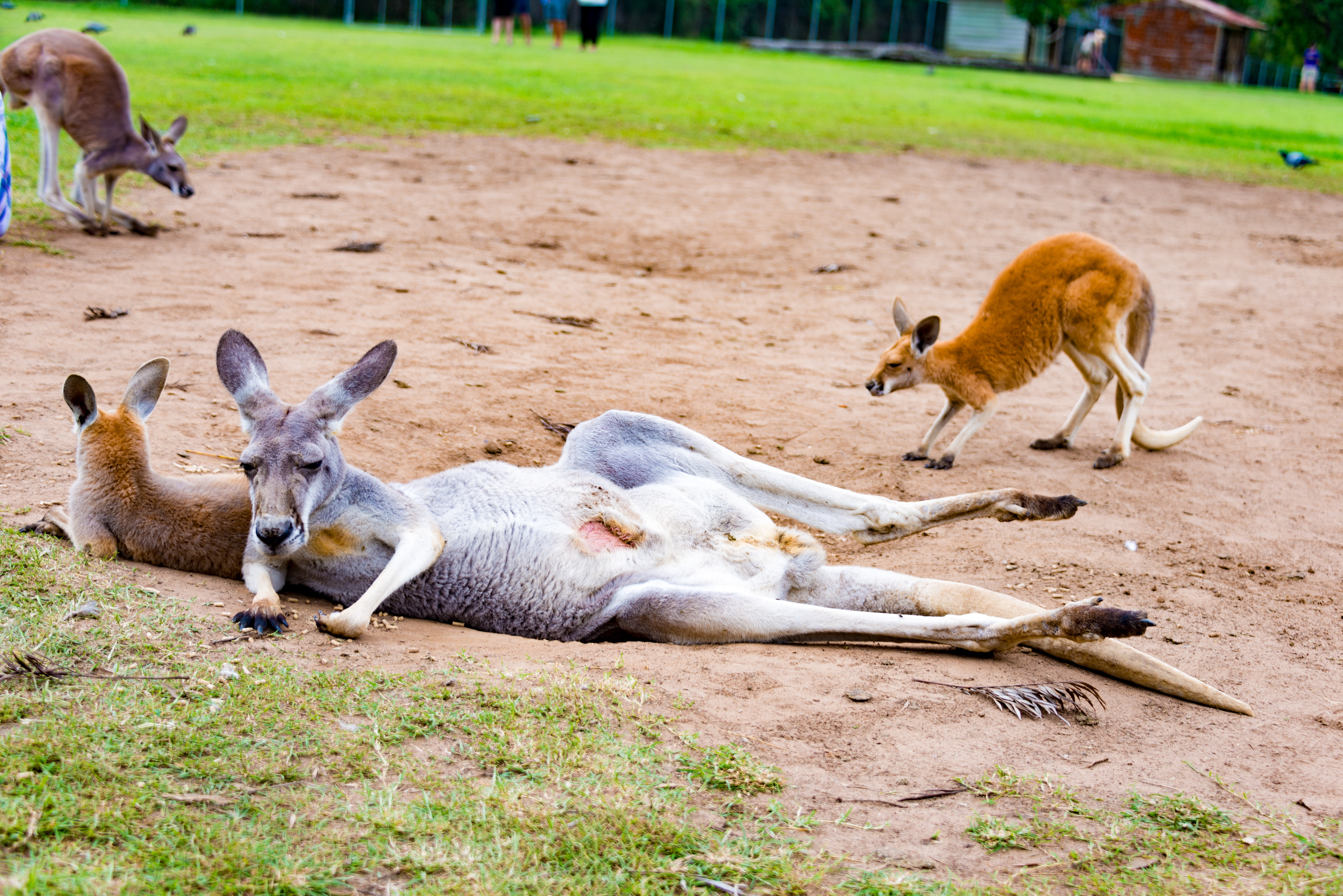 The sanctuary has free-roaming kangaroos in a huge reserve where visitors can feed and pet kangaroos. Emus as well walk freely within the reserve.